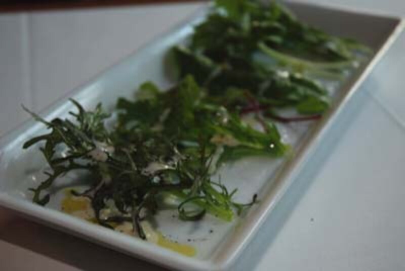 ブレッドサラダランチ(850円)をどうぞ。天然酵母を使って焼いたパンを軽く焦げ目がつくくらいローストし、アンチョビガーリックソースを塗ってをサラダにイン。サラダはサニーレタスなどをはじめとして葉モノを常時6種類、そこにベビーリーフなどのハーブ類を加えています。最後にカリカリに焼いたベーコンと温泉玉子をトッピング。