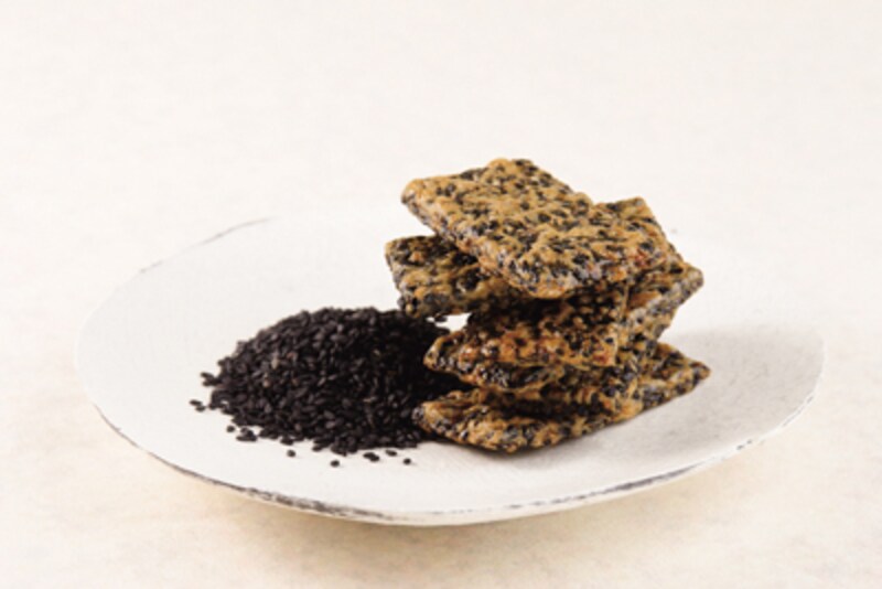 胡麻沢山(ごまたくさん)(14枚609円)で 貴重な国産黒胡麻をたっぷりと使い、噛むほどにお口に広がる甘い胡麻の香りが広がっていきます。