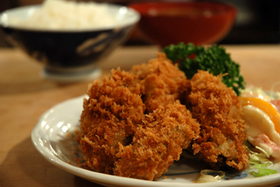 素材のこだわりだけではありません。これだけは人に任せられないと岡田さん自らが調理場で腕を振るいます。運ばれてきたお皿には、約8センチほどもあろうかという大振りなカキフライが5個。かぶりつくと、ぷっくりとした身から牡蛎のエキスが口いっぱいに広がり、鼻孔にただよう磯の香り。火を通しても、身はみずみずしくジューシーなのが印象的です。この牡蛎に対抗する衣は、大きめのパン粉を使い、ラードでしっかり揚げた香ばしさがあふれるもの。素材の良さ、衣のつけ具合、揚げ時間、それらの要素が合わさって、この絶妙な味わいを生んでいます。「ここに来てよかった」心からそう思える一皿なのです。