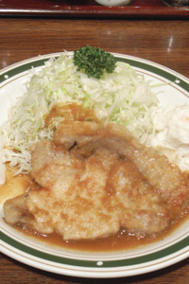 この味の秘訣は……「生姜を入れるタイミングが重要。肉を焼いてからタレをからめ、火を止める直前に皮付きのまますりおろした生姜をスプーン1杯程度フライパンに落とします。さっと火を通したらできあがり」(料理長)。なるほど! だから生姜のフレッシュさがいきているんですね。