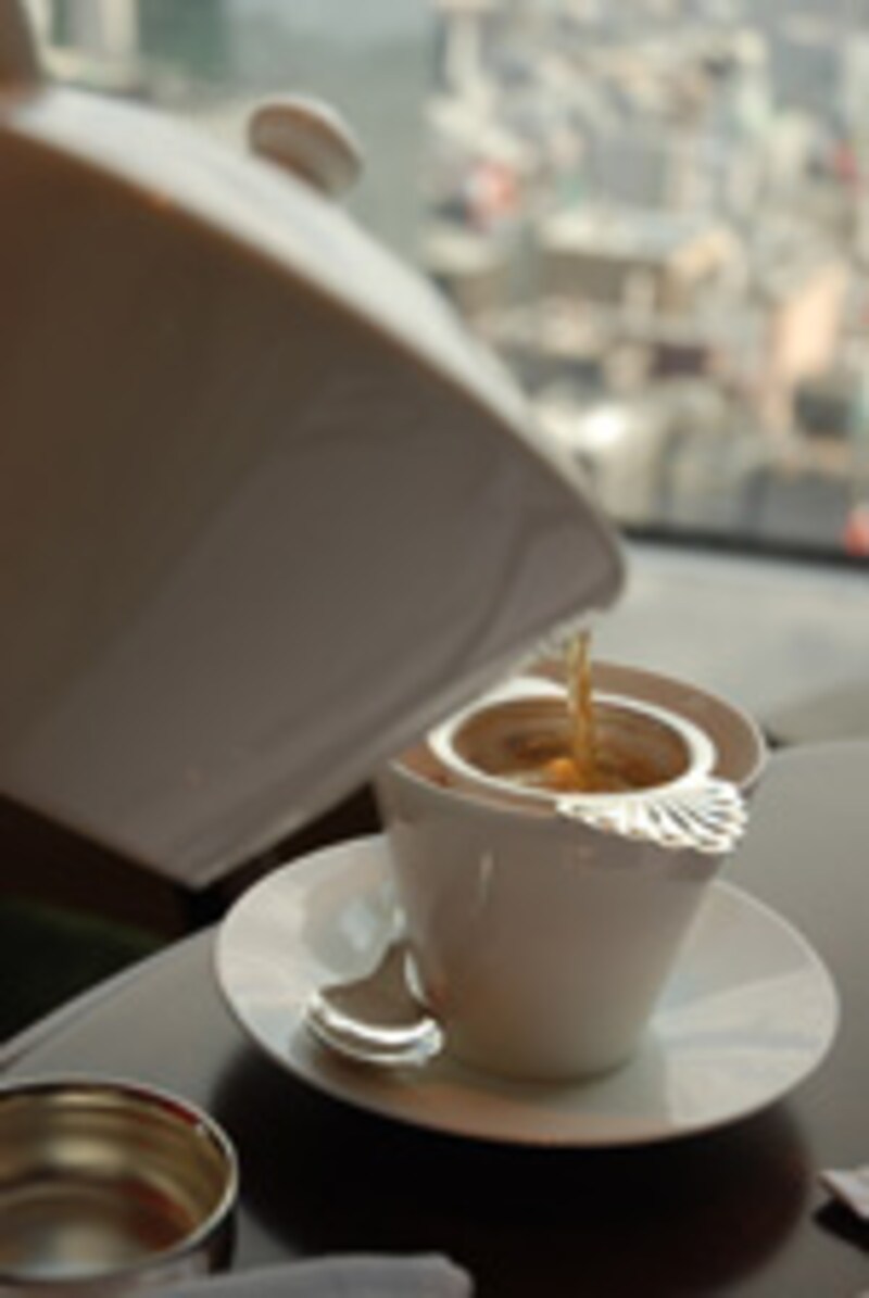食後は街を見下ろしながらのティータイム。大きなポットでサービスされるオリジナルブレンドの紅茶を心ゆくまで楽しみました。オリエンタルな雰囲気で、優雅な時間と味覚を約束してくれるこのラウンジ。夜はまた違った表情を見せてくれるでしょう。今度はバーとして、夜景とともに充実のフードメニューを楽しんでみたいと思います。