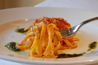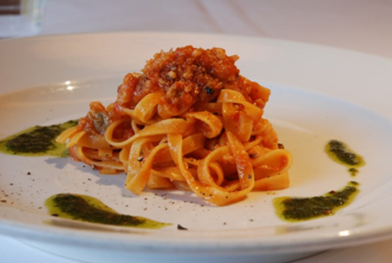 それに、お店で手打ちしているパスタもモチモチとした食感。舌には、パスタの表面のちょっとしたザラザラ感が伝わってきます。このザラザラにソースがしっかりからんで、この味わいを出しているんですね。「日本の方は、ツルツルした食感のパスタを好みますけど、イタリアの味を伝えるのも私の仕事かなと思って」と料理長は語ります。