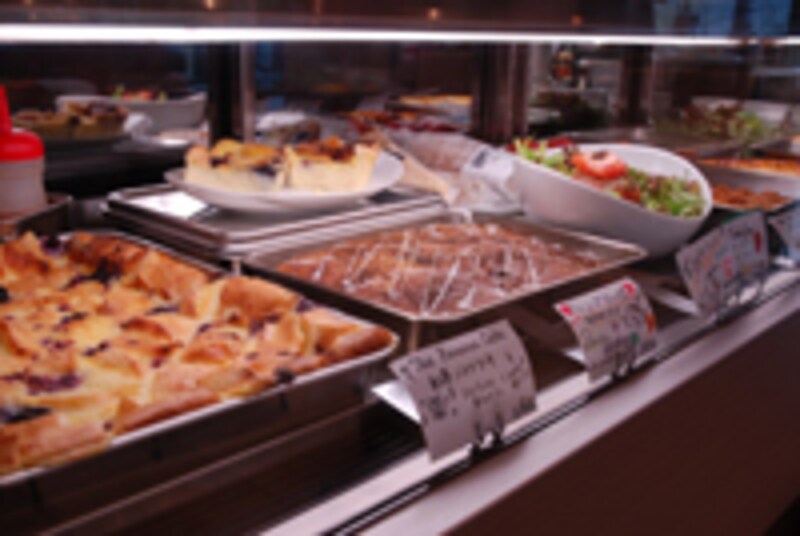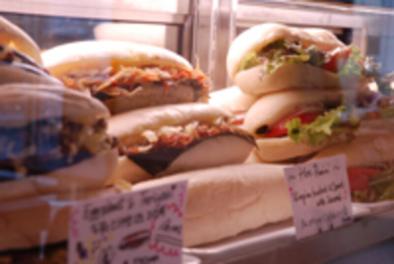 まだ焼かれる前のパニーニが所狭しと並んでいます。どれもパンから具がはみ出さんばかり。山崎さん曰く、「イタリアやフランスの街角で見るような具がたっぷり入ったパニーニが作りたかったんです」。中にはきんぴらや豆腐、照り焼きの挽肉など、日本テイストの食材を使ったパニーニも。メニュー名を見ているだけで食欲が沸いてきます。