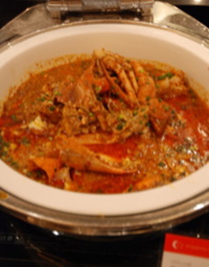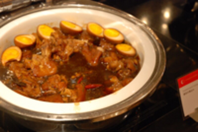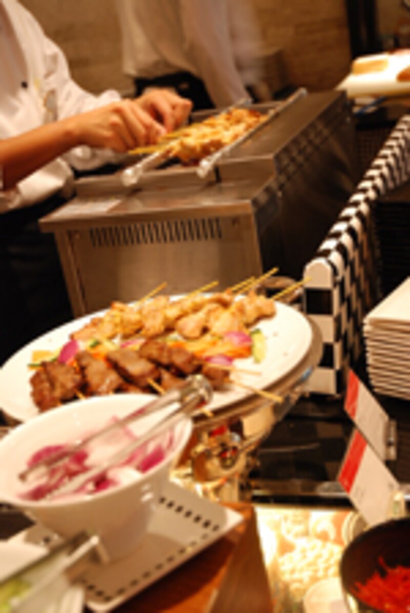 サテ。サテとは、香辛料をベースにしたタレに漬け込み焼いた、シンガポール料理の定番。その場で焼いているという臨場感もビュッフェ料理ならではの楽しさですね。お味は、ちょうどタンドリー料理のよう。数多くのスパイスが複雑な香りを生み出し、肉の味を膨らませてくれています。