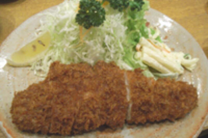 西永福の駅からほど近いところにありました。店に入るとカウンターと小上がりが数席あるだけの、どこの街にも1軒はあるようなとんかつ屋さんです。嶋さんによると今からおよそ20年前、学生時代にここで食事をするのがたまの贅沢だったのだそうな。料理を選びながら思い出話しに花が咲きます。さて、私が選んだのはシンプルな