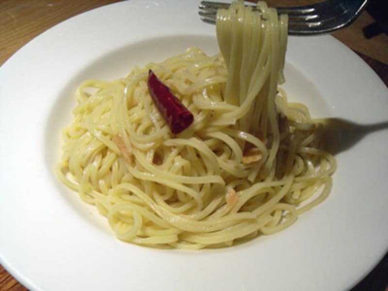 | いろいろキノコとキノコソースのピッツア1575円 | 唐辛子とニンニクのタリオリーニ1155円 |