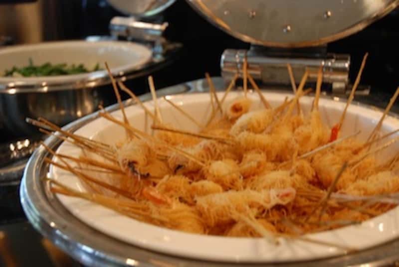 | 写真手前、シーフードのカダイフ巻き |
