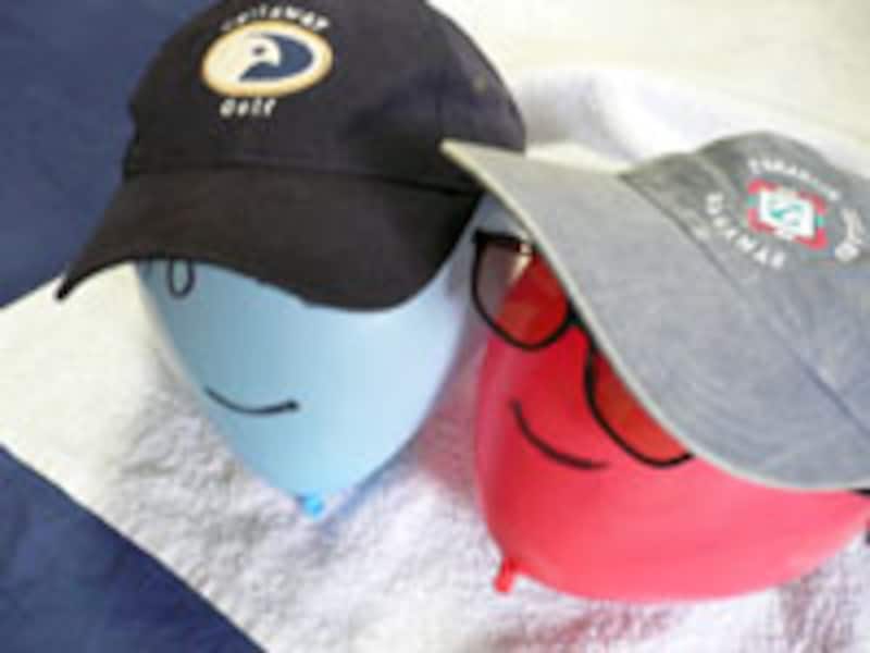 「膨らまして結んだ状態の風船」を帽子の中に入れるのではなく、「帽子の中で膨らましながら結ぶ」こと。すると風船の圧力が程よくフィットし、シワも伸びるので仕上がりがキレイ。特に、キャップのように丸みを帯びた形状のものにぴったりです!汗かきのお子さん用など、こまめに洗ってシャキッと乾かしてあげましょう。