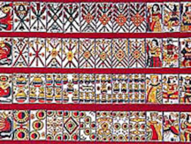 | 【豆知識】ポルトガル由来の「天正カルタ」の復興版。12枚×4=48枚。カルタというよりもトランプに近い。「天正カルタ」から日本版の「うんすんカルタ」に発展。うん=1、すん=最高を表すことから「うんともすんとも言わない」の語源になりました。 |
