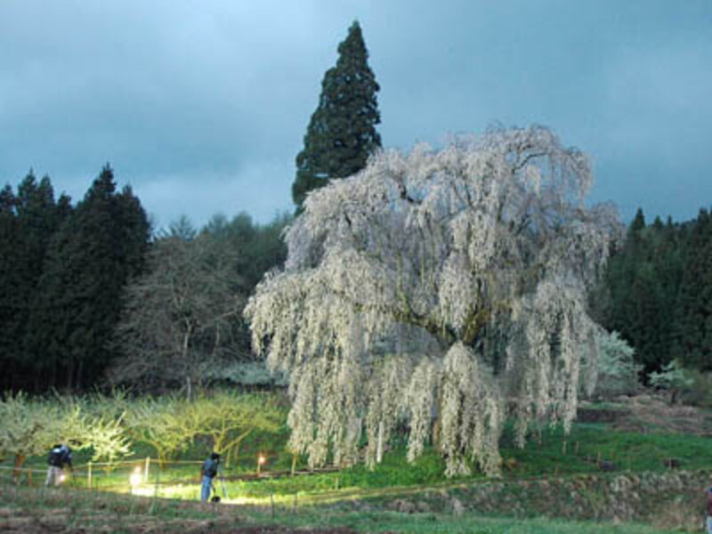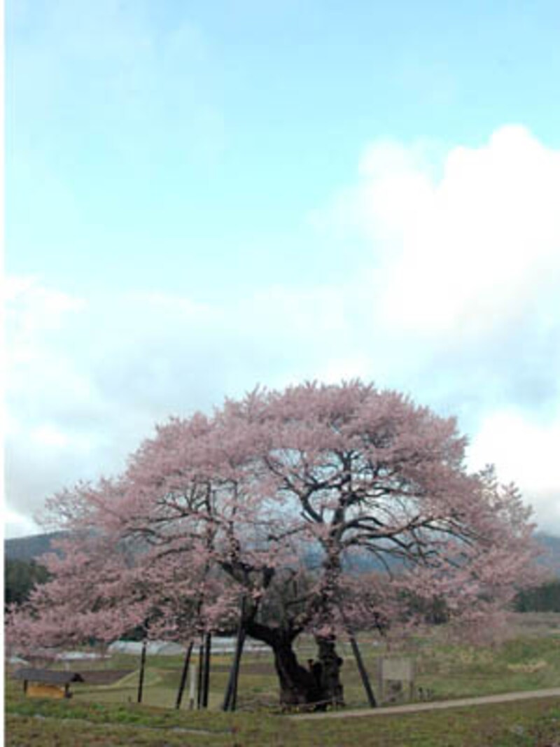 「高山村はしだれ桜の里として有名ですが、中でも一番見応えがあります。樹齢250年、高さ22m。ライトアップされた満開の姿はなんだか怖いくらい」