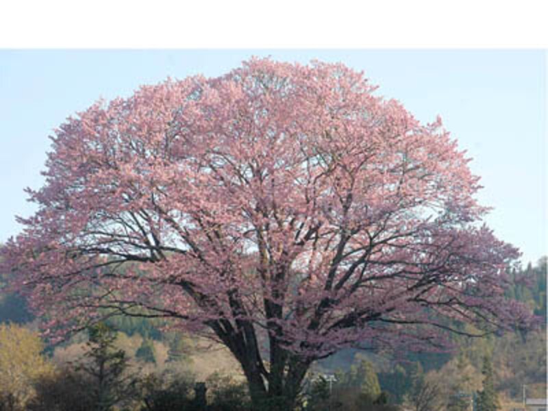 「北信州にはヤマザクラよりもピンク色が濃いオオヤマザクラが多く、クルマを走らせていると目を引く木がたくさんあります。これは長野市街から北上して坂中峠を越えた旧道沿いにある地蔵久保のオオヤマザクラ。日清戦争の戦勝記念に地元の人々が植えたといわれ、樹齢は130年あまりと若いのですが、姿がよく整っていてみごと。花の下にはたくさんの人が集まっています」
