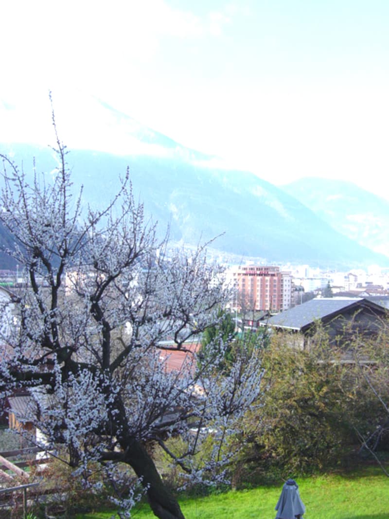 「家の庭の杏の木。これから実がなって、杏のタルトを作る時期がやってきます。スイスでは多くの家庭の庭に杏の木が植えられていて、この木の花が春の訪れを告げます」