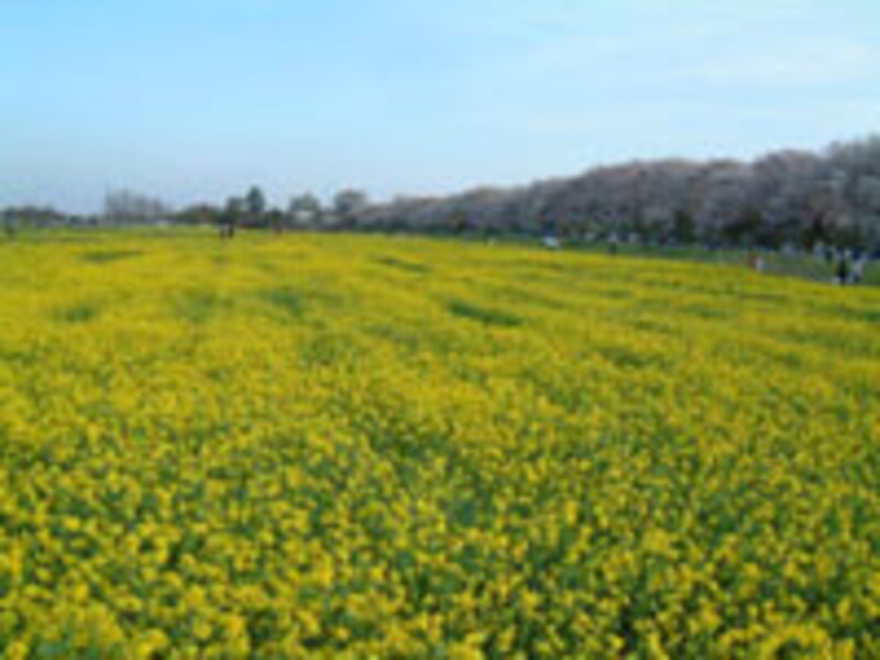 「埼玉県の北部にある権現堂桜堤。川の土手に約1kmに渡って咲く桜と共に一面に広がる菜の花の黄色が印象強い場所です。ここの桜は北野武監督の映画「Dolls」にも登場した桜。既に散り始めていて、散策中は散った花びらが舞う姿が見られました」