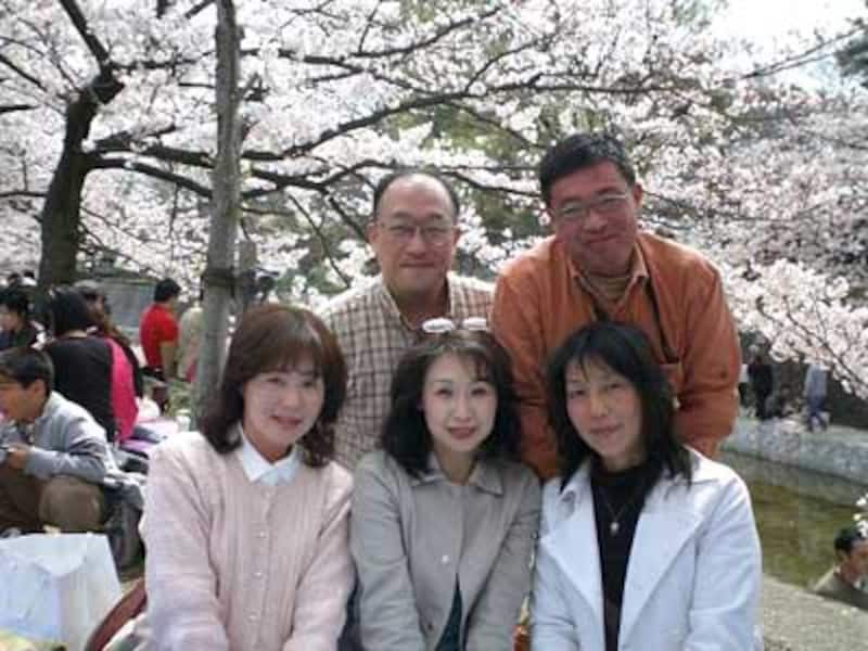 「日本の桜百選に選ばれた夙川の桜です。川の両側に咲く満開の桜の下に関西のガイドの5名が集まって花見を。女性陣が桜の花入りのおにぎりや、お手製サンドイッチ、お手製料理などを、男性人がお酒を中心に持ち込み、飲みながら食べながら楽しいひと時を。誰が誰だかわかりますか?」 ←各サイトをクリックすれば、その答え合せができますよ。