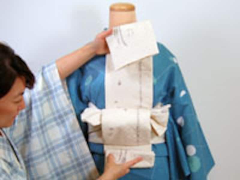 着物の構造をみればわかるように、曲線ではなく直線の美。ウエスト、背中、ヒップなど補正が必要な箇所は人それぞれですが、タオル一枚の差が帯の落ち着き具合や着崩れに大きく影響してきます。出掛けるときはキレイでも、目的地に着く頃はすでに崩れ出し、帰る頃にはぐしゃぐしゃ……ではイメージダウン。