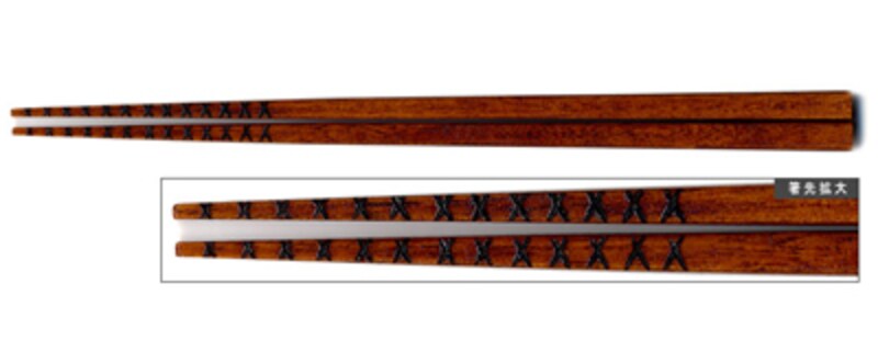 うどんが上手くつかめるよう、四角くて太いうどん箸。よく見ると、箸の真ん中あたりから先にかけて大きめの溝が彫ってあり、うどんが滑らないようになっています。うどんを想定しているので箸も太いのですが、ラーメンの太麺などにも向いています。細かいものはつまみにくいです。