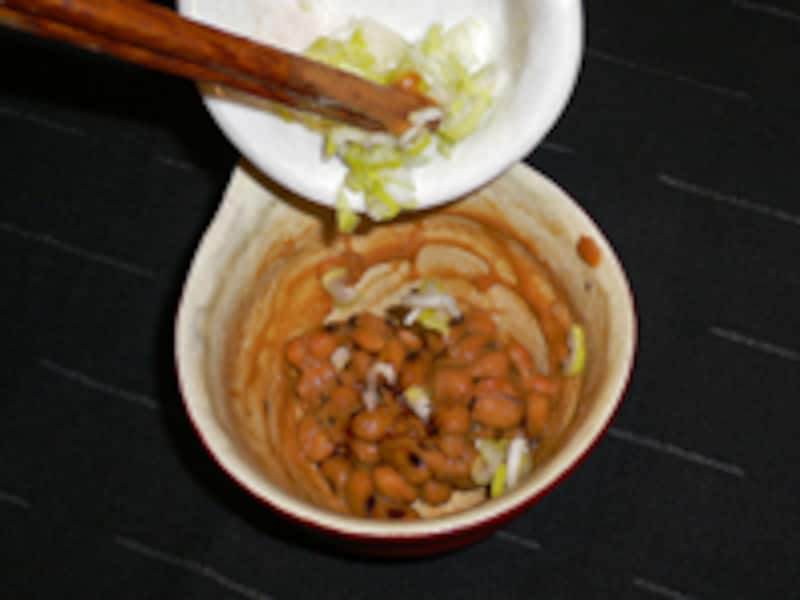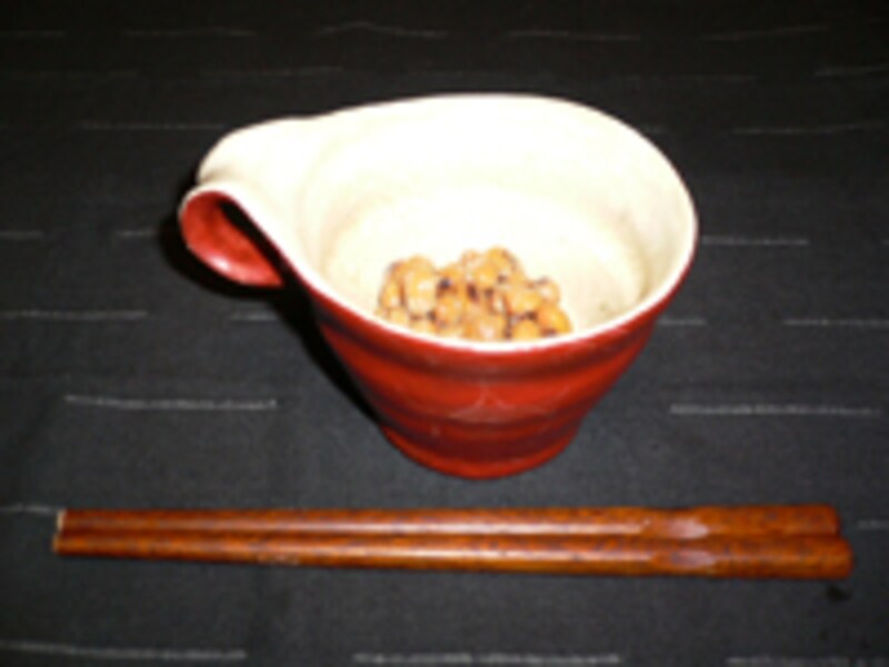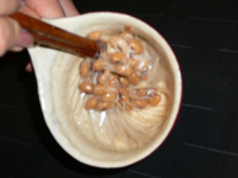 ここでいう納豆の拵え方とは、練り方のことである。この練り方がまずいと、納豆の味が出ない。納豆を器に出して、それになにも加えないで、そのまま、二本の箸でよく練りまぜる。そうすると、納豆の糸が多くなる。蓮から出る糸のようなものがふえて来て、かたくて練りにくくなって来る。この糸を出せば出すほど納豆は美味くなるのであるから、不精をしないで、また手間を惜しまず、極力練りかえすべきである。 かたく練り上げたら、醤油を数滴落としてまた練るのである。また醤油数滴を落として練る。要するにほんの少しずつ醤油をかけては、練ることを繰り返し、糸のすがたがなくなってどろどろになった納豆に、辛子を入れてよく攪拌する。この時、好みによって薬味を少量混和すると、一段と味が強くなって美味い。茶漬けであってもなくても、納豆はこうして食べるべきものである。最初から醤油を入れて練るようなやり方は、下手なやり方である。納豆食いで通がる人は、醤油の代りに生塩を用いる。納豆に塩を用いるのは、さっぱりして確かに好ましいものである。しかし、一般にはふつうの醤油を入れる方が無難なものが出来上がるであろう。』 ~北大路魯山人『魯山人味道』より