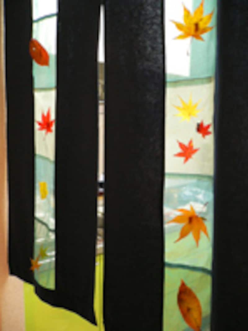 両面テープを使って窓ガラスや透ける素材に貼り付ければ、ナチュラルなステンドグラスのできあがり。だんだん乾いてクシャクシャになってしまうので、拾った当日しか楽しめませんが、その儚さがまた良いのです。