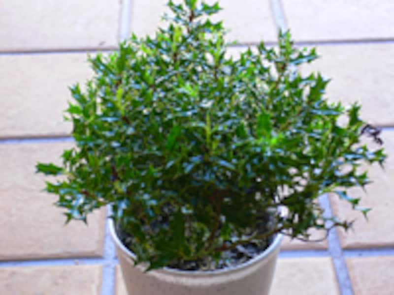 今回は、いかにも節分らしいヒイラギの代わりに、鉢植えのヒメヒイラギを使いました。ヒメヒイラギはとても小さくてかわいらしいミニツリー(でもしっかりトゲがあり鬼退治にぴったり。刺さると痛いので扱いにはご注意ください)。丈夫で育てやすく、節分後は寄せ植えなどにして長く楽しめます。300円程度と価格もお手頃です。