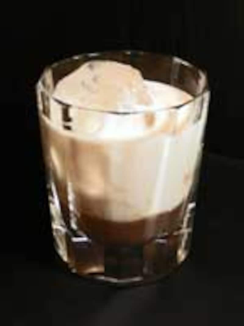 チョコレートリキュールを牛乳で割れば、マティーニよりも飲みやすいカクテルになります。2層に分離した見た目もキレイですよ。