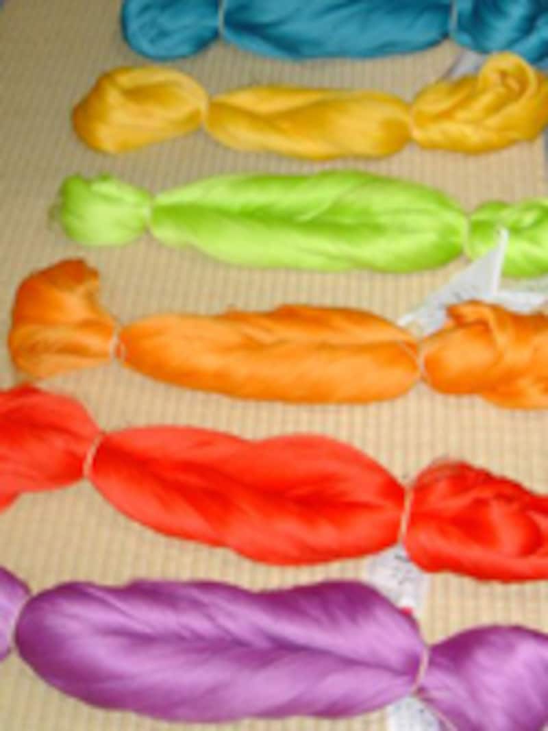 | 染め上がったオリジナルの糸。産地ではイメージに合うような鮮やかな糸が使われていなかったのです。 |