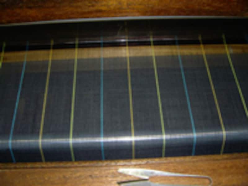 | 伝統的工芸品の小千谷縮に、ネオンのように鮮やかな糸を織りこむと…… |