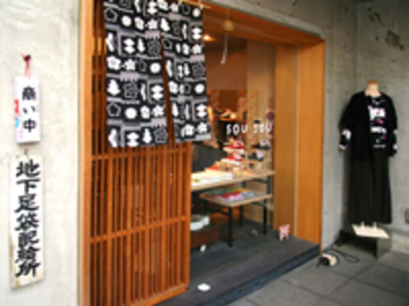 | SOU・SOUは、京都に「足袋」「作務衣」「伊勢木綿」「しつらい」の4店舗があり、東京に「東京店」「足袋・青山店」があります。 |