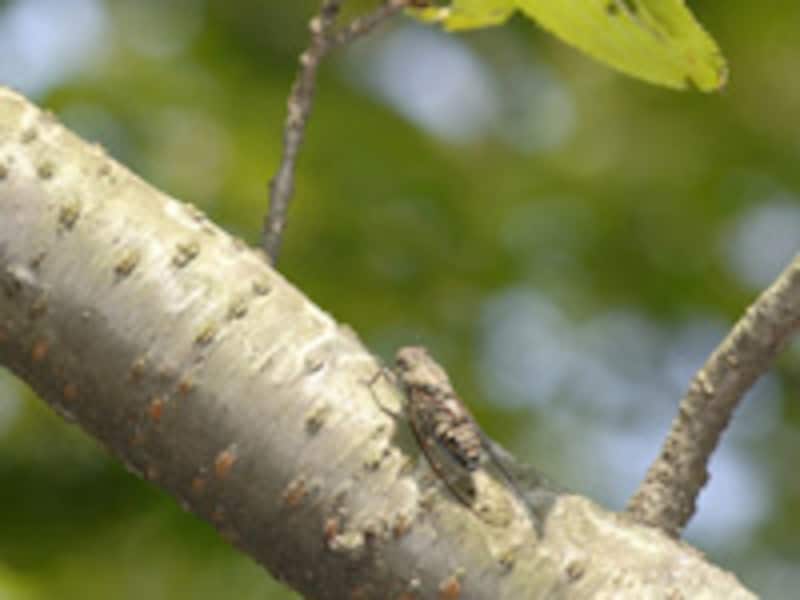 午後から夕方にかけて「ツクツクボーシ、ツクツクボーシ…」とリズミカルに鳴きます。7月頃から鳴いていますが他のセミの声にかき消され、8月下旬頃から長命なツクツクボウシの声が目立ちはじめるため、晩夏のセミとして秋の季語にもなっています。