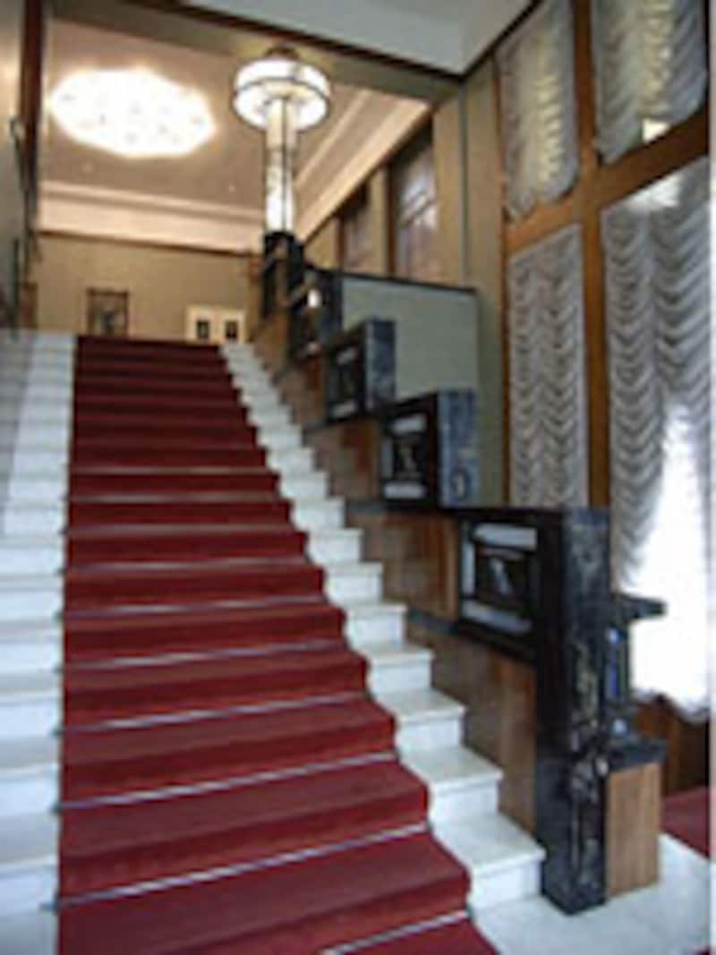 - 裾が乱れないよう右手で裾をかるく持ち上げ、横向きに浅く腰掛けます。髪が乱れないよう頭を低くし、足を揃えて体を90度回して正面を向きます。