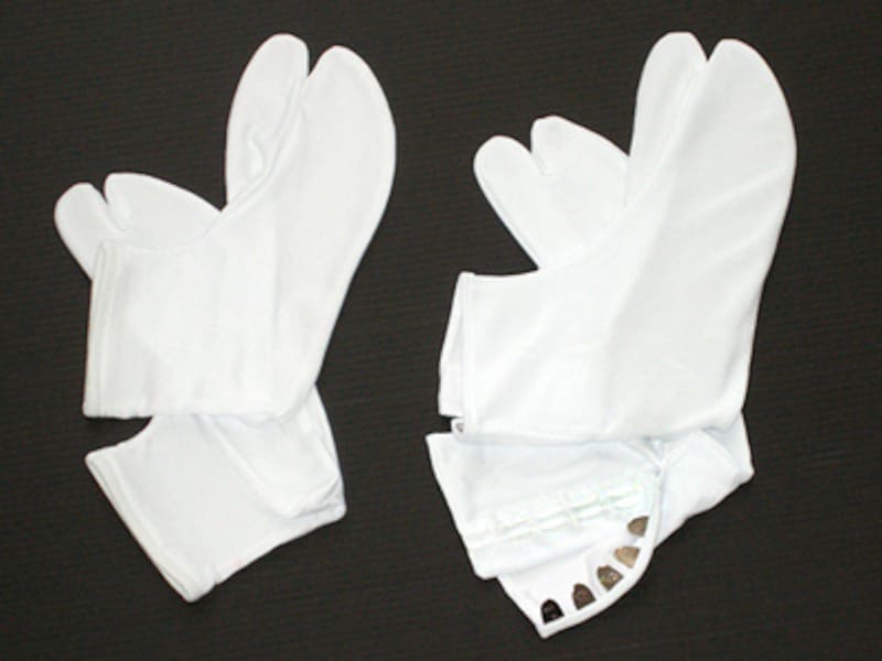 | こちらがストレッチの足袋カバー(左はこはぜなし)。綾秦先生は素足で下駄をはかず、足袋カバーを2枚重ねているので快適とのこと。なるほど~ |