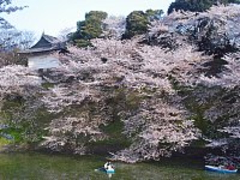 たいへんな人気で混雑する場所ですが、風情がある桜としてはピカ1。お濠に枝を落とす桜の大木は、目線と同じ高さで眺めることができ、並木道や公園では見られない風景を作り出しています。