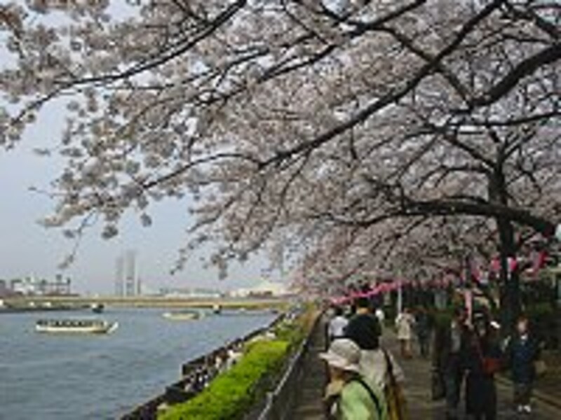 「は~るの うら~ら~の す~み~だが~わ~♪」とつい歌いたくなってしまうほど見事な桜の競演が、川沿い1kmあまりに渡ってのぞめる隅田川。両岸に遊歩道や公園が整備されていますので、人が多くても動きやすい所です。