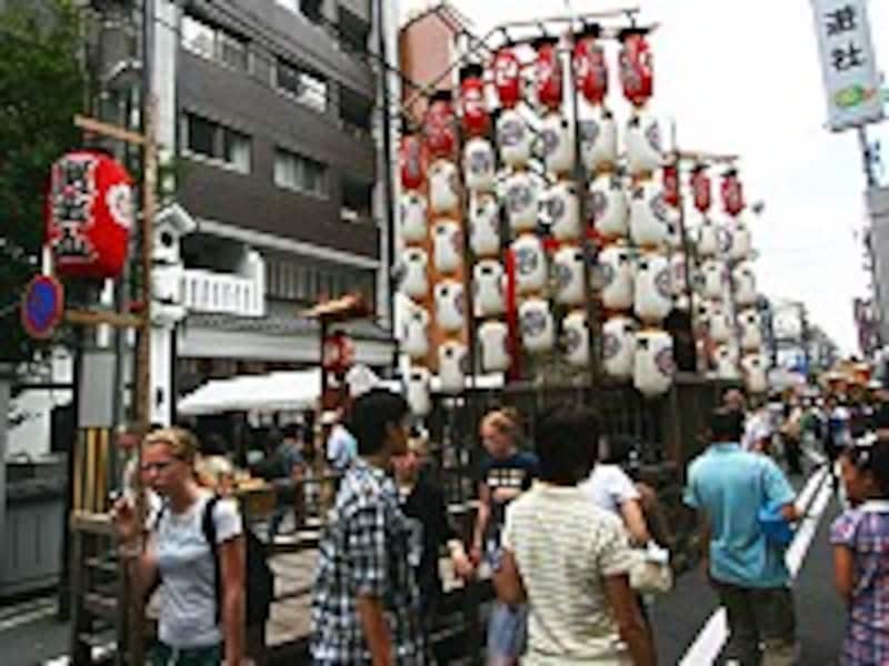 | 各町内に設置された山鉾周辺もインターナショナルな雰囲気 |