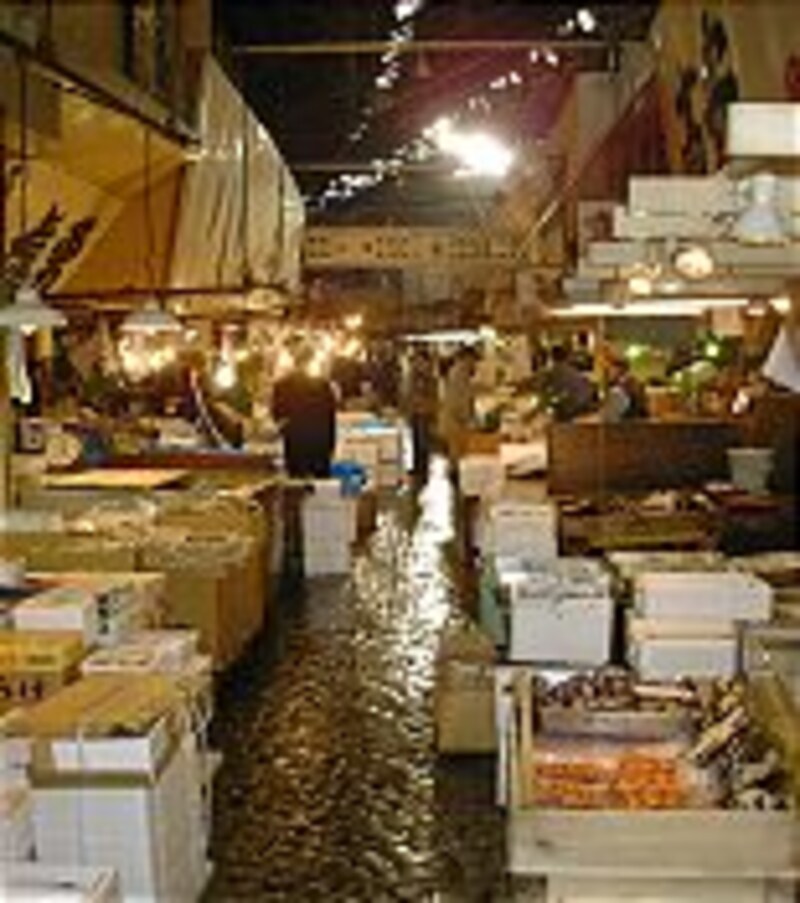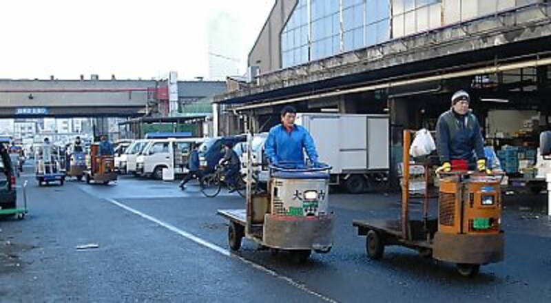 | 築地名物ターレがビュンビュン行きかう早朝の市場 |