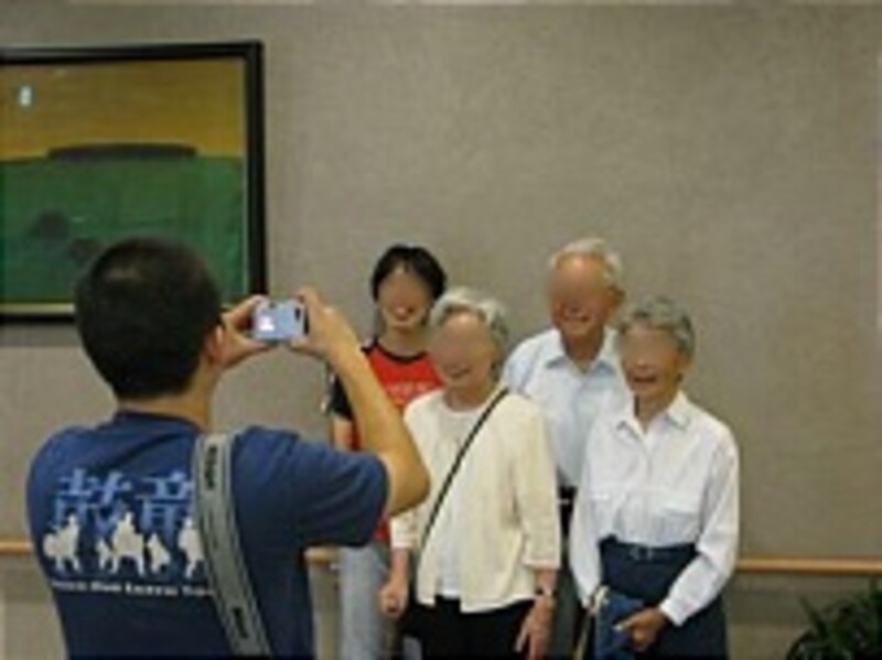 | 記念写真を撮るスコットさん。前列左が医師夫人で、その左後ろが娘さん |