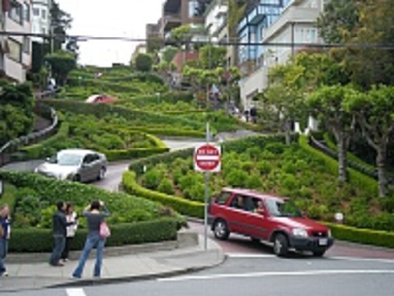 | 数多ある坂道の中でも最も有名なのが、ここロンバード・ストリート |