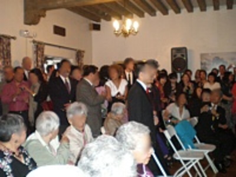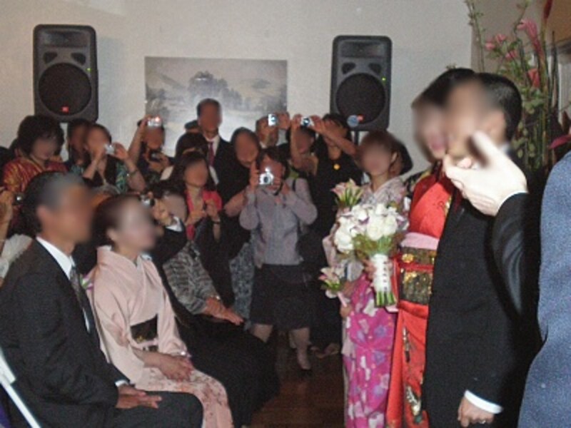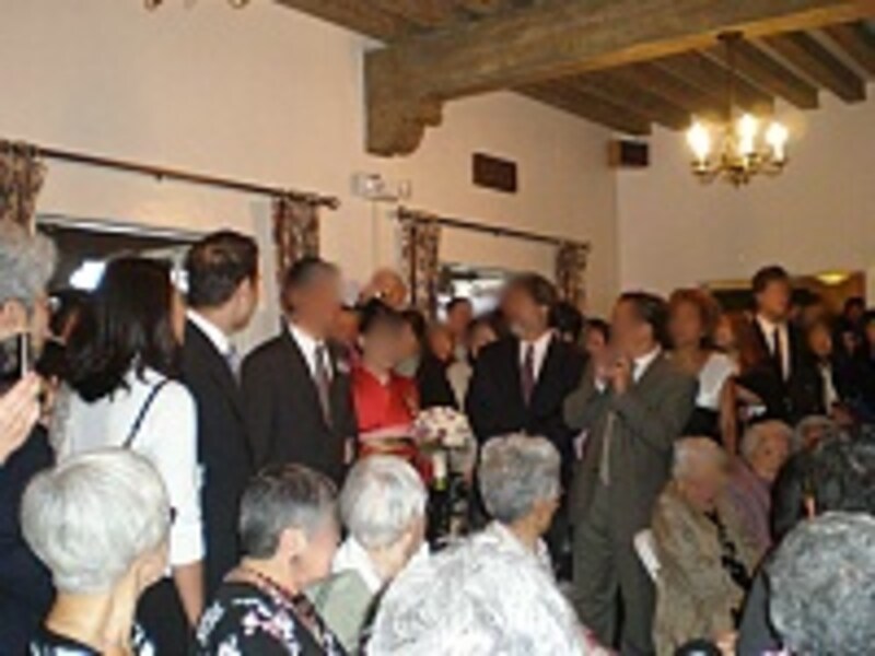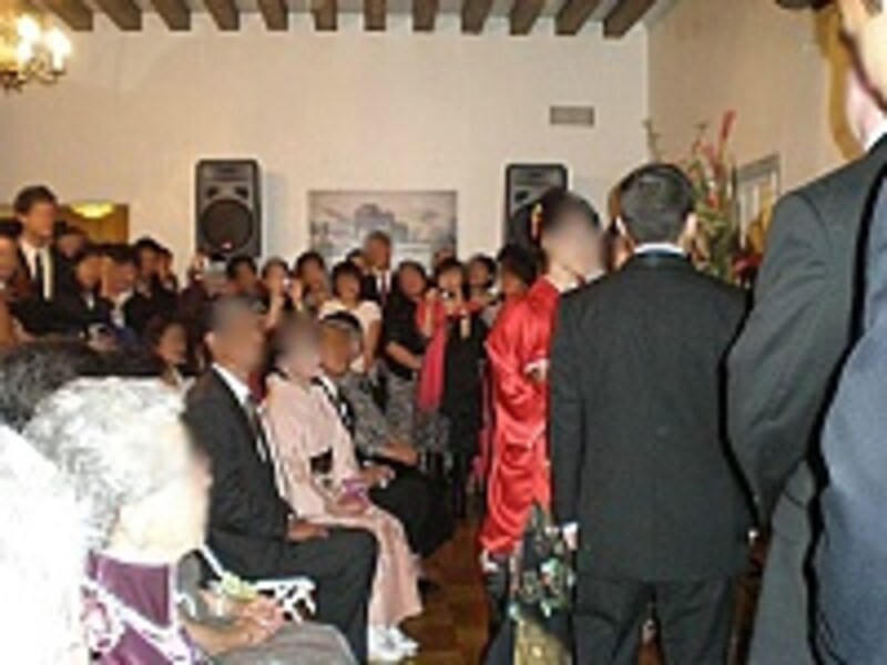 すべての儀式が終わり、ほっとした表情でみなさんのほうを向くスコットさんと直美さん。一斉にカメラが向けられます。ご両親も安堵されたことでしょう。
