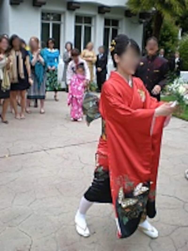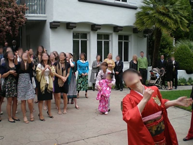 欧米の結婚式ではよく行われるブーケトス。はい、今回もありました。スコットさんの従姉妹には独身の若い女性が多いことから、たいへんな盛り上がり様でした。