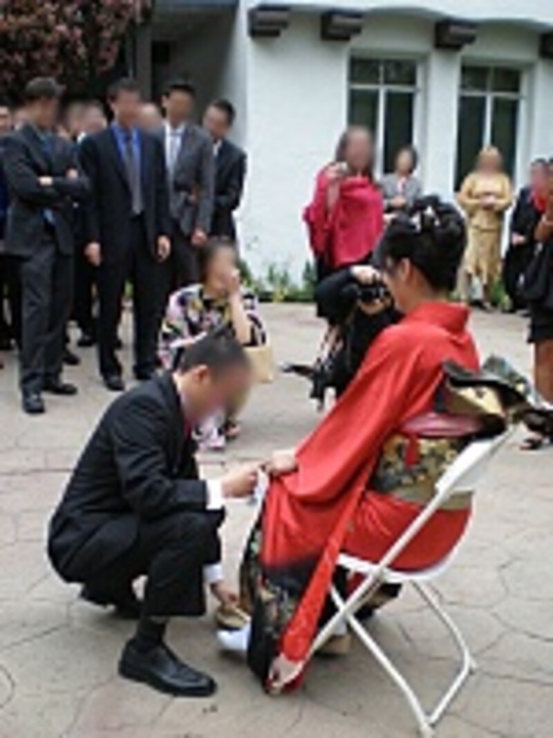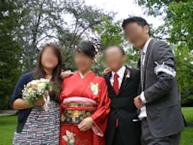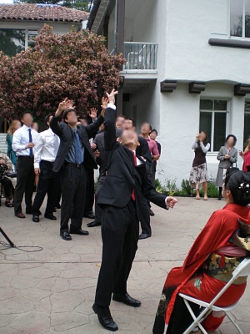 獲得者はこのお2人。女性はスコットさんの従姉妹、男性は大学時代の友人で日系五世の方だそう。左腕の腕章みたいなのが、花嫁のガーターです。たしかに、レースとリボンが付いていますよね。