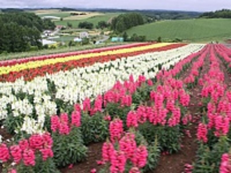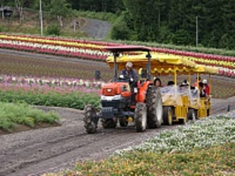 美瑛(びえい)にある「四季彩の丘」は、7ヘクタールの園内に色とりどりの花が咲き乱れるお花畑。歩いてもまわれますが、ご年配の方と同行している時は、トラクターやカートでまわるのがオススメです。