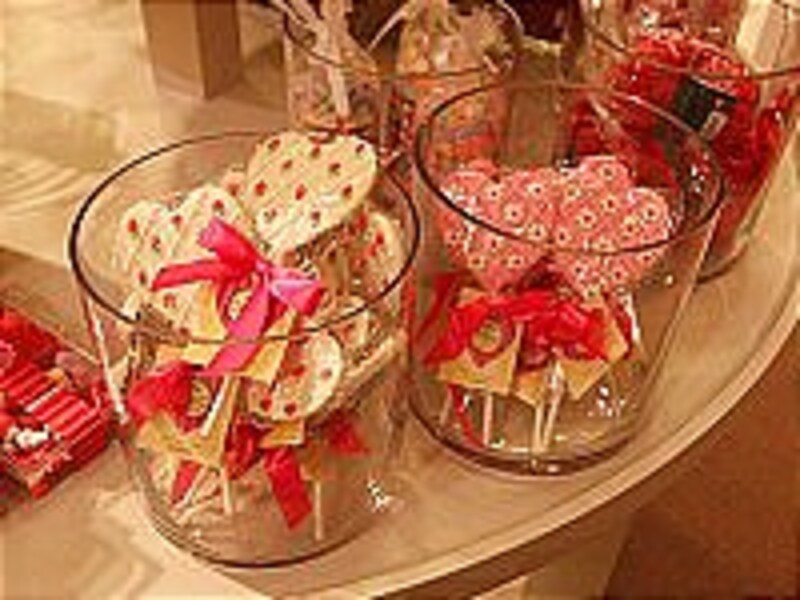 バレンタイン用のディスプレイをしているのは、チョコレートショップやスイーツショップだけではありません。街を歩いて、いろいろ集めてみました♪
