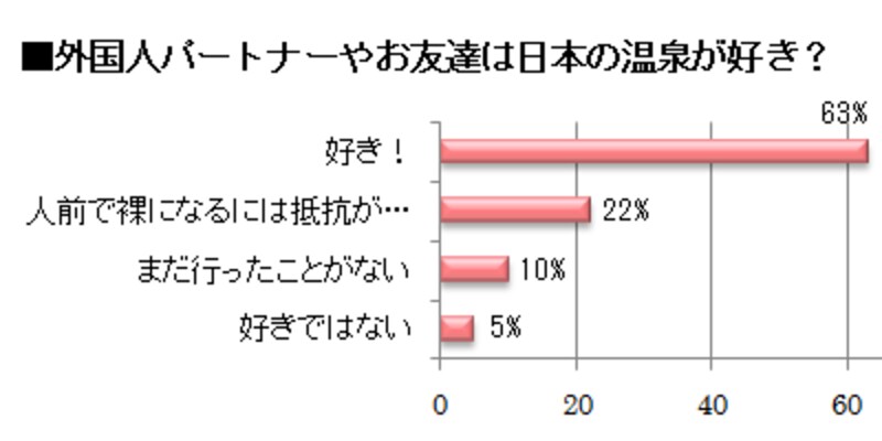 グラフをご覧になって分かるように、半分以上の方が、年に1回くらいは、外国人パートナーやそのご家族、親戚、お友達に日本をガイドする機会があるようです。案内する場所を考えたり、外国語での説明の仕方など、準備しておくことも必要になりますね。
