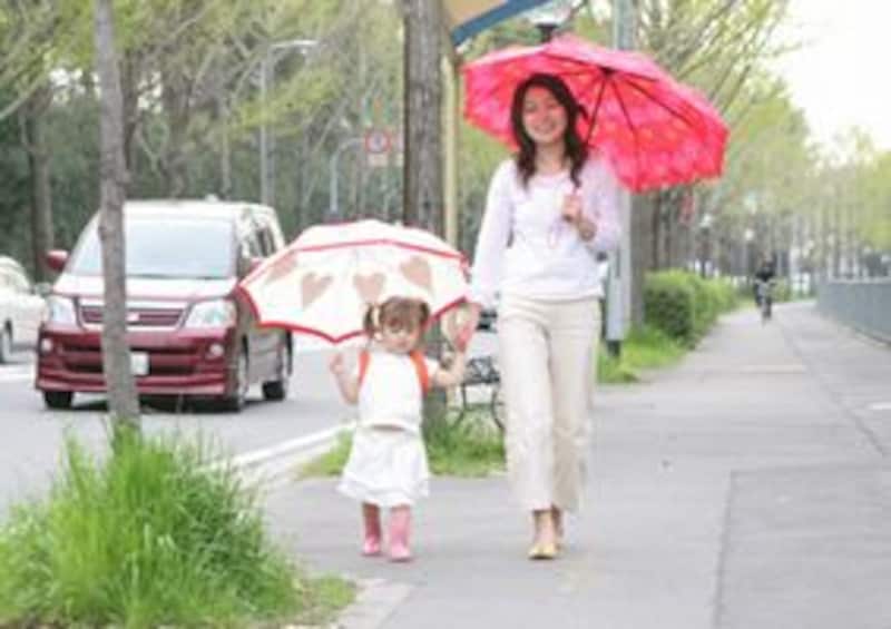 歩道と車道が分離されていない道などでは、雨の日に傘をさしながら手をつなげる安心はとても大きいものですね。