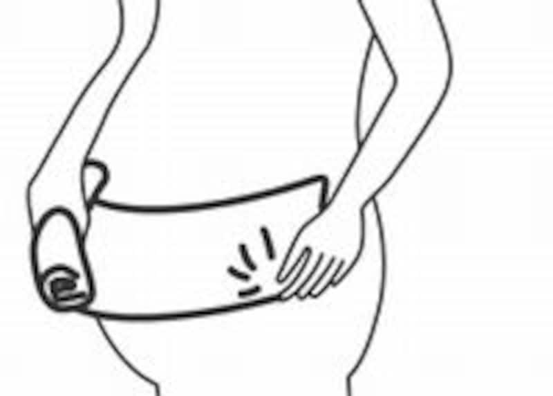 産後→出産直後はさらしをギュギュッと巻いて、ウエストニッパー代わりにお腹を引きしめましょう。たるんだお腹とゆるんだ骨盤をサポートして、産後の体をケアします。
