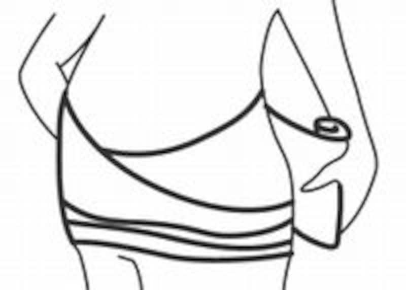 【1】帯はくるくると巻いておきます。お腹の横のあたりに帯の端をおいて巻き始めます。お腹の丸みに合わせて、下の方から巻いていきます。2巻きめで巻きはじめの帯の端を重ね、ずれないように固定しましょう。