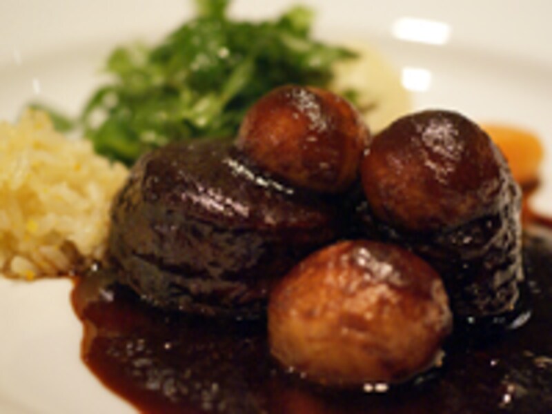 「牛肉の煮込み ブルギニヨン」は、とろ~りとしたバラ肉を、ソースがこれ以上なく引き立ててくれています。ここでも、ソースとにんじん入りのコンソメライスは最高でした。