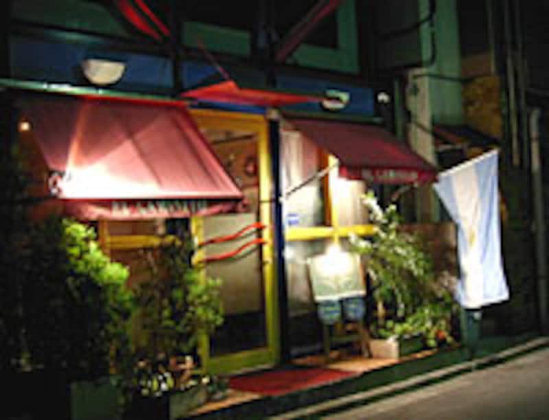 店内は黒いテーブルで統一され、壁とイスはアルゼンチンの褐色土をおもわせるアースカラー。適度な薄暗さの中でビビットな赤のランチョンが目をひきます。