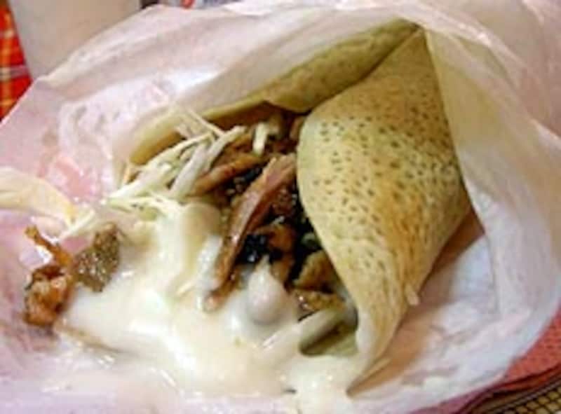 薄切りにした肉を何層にも重ねて金棒に突き刺し、回転焼きにするところはトルコとまったく同じなのだが、実はパンとソースに違いがある。ピタパンやコッペパンなどをつかうトルコに比べて、ブルガリアでは「パラチンキ」と呼ばれる、しっとりとしたパンケーキのようなパンを使うのだ。