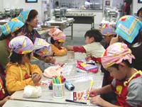 生地を休ませている間に、ラーメンを入れる袋に絵を描きます。自分で作ったラーメンを自分で絵を描いたオリジナルの袋に入れてもって帰れるとあって、子ども達はみんな熱心に絵を描いています。