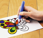 | 縁どりしたイラストの中をグラスデコのカラーで 厚めに塗り、完全に乾かす。(約8時間) | 透明感あるカラーになり、 グラスデコの端をフィルムから、そっとはがすと、 貼ってはがせるシールの出来上がり。 |